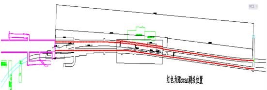 北京地铁某标合同段区间地下疏松区探测沿地铁轴。在小区附近加密两条测线。 探测设备使用北京同度工程物探技术有限公司生产的RDscan空洞探测系统,32通道,24位A/D,最高采样率156Khz/ch。接收使用检波电缆,内置32路检波器,为变间距设计。接收段长度23.5m,前16道检波器间距0.5m,后16道间距1m。频带20Hz-16KHz。采用敲击震源,激发点距1.0m,偏移距1m。探测工作区位置见图1。