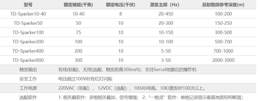 TD-Sparker系列大功率电火花震源是一种典型的非炸药地震勘探震源;可用于地震散射、反射、折射、跨孔CT、VSP、微侧井、小折射等地震勘探方法。 适合山区与平原等不同野外条件的场地、线路、采空区、岩溶、边坡、水文地质、地质构造等勘察项目。在煤田地质、石油勘探、工程物探等领域有广泛的应用。 TD-Sparker的能量、放电电缆长度和封装方式等可以根据客户的要求定制。