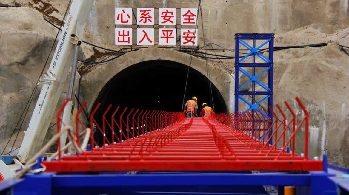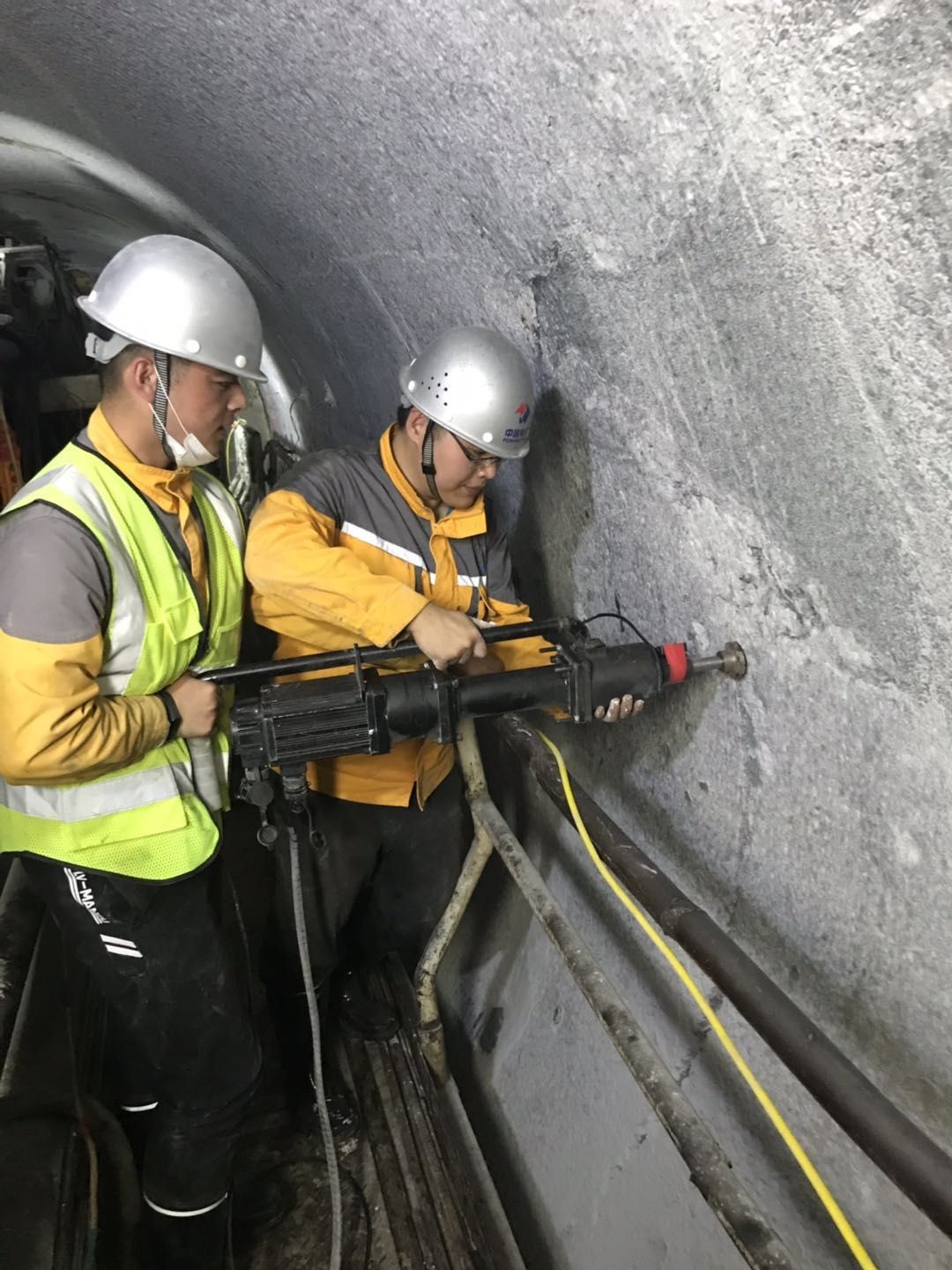 2015年在巴基斯坦NJ项目钻爆隧道,应用炸药进行纵波超前预报,探测距离100m。识别标志:偏移图像中里程40m出现红蓝条纹,推断该位置存在岩性接触带,后面是红条纹,对应波速升高,岩体力学性质变好。